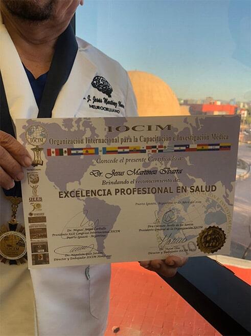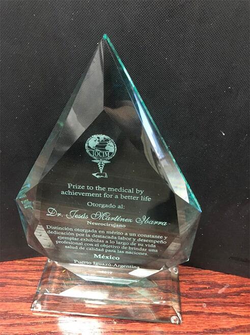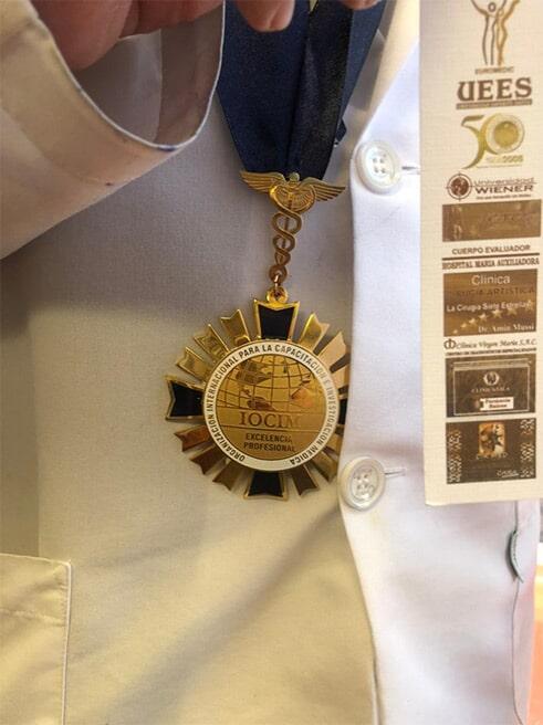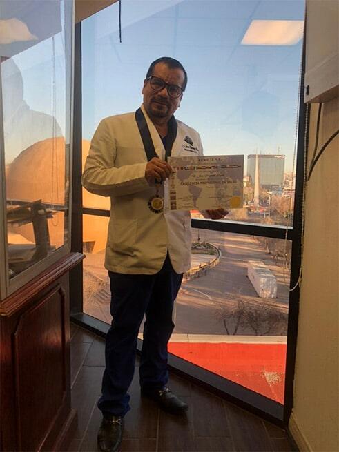 La Organización Internacional Médica IOCIM, le otorgó el “Prize to the medical by achivement for a better life”, por ser el mejor profesional de la salud del año 2018 y 2019, por su ardua labor en el ámbito médico y por mejorar la vida de sus pacientes.